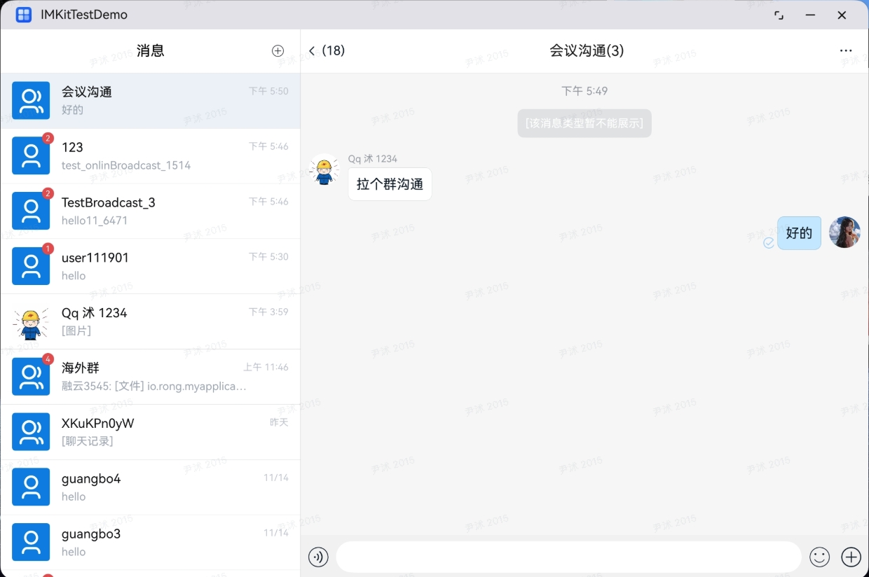 - 在左侧栏展示会话列表,右侧栏展示当前选中会话的聊天内容,实现主流 IM 应用的常见布局。